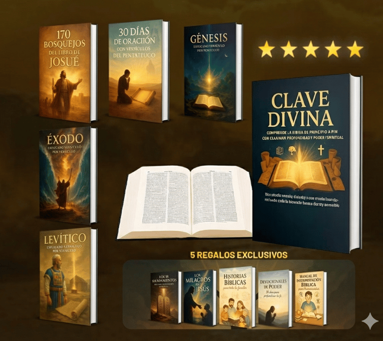 Al adquirir CLAVE DIVINA hoy, recibirás totalmente GRATIS estos 5 regalos exclusivos que complementarán tu estudio y crecimiento espiritual: